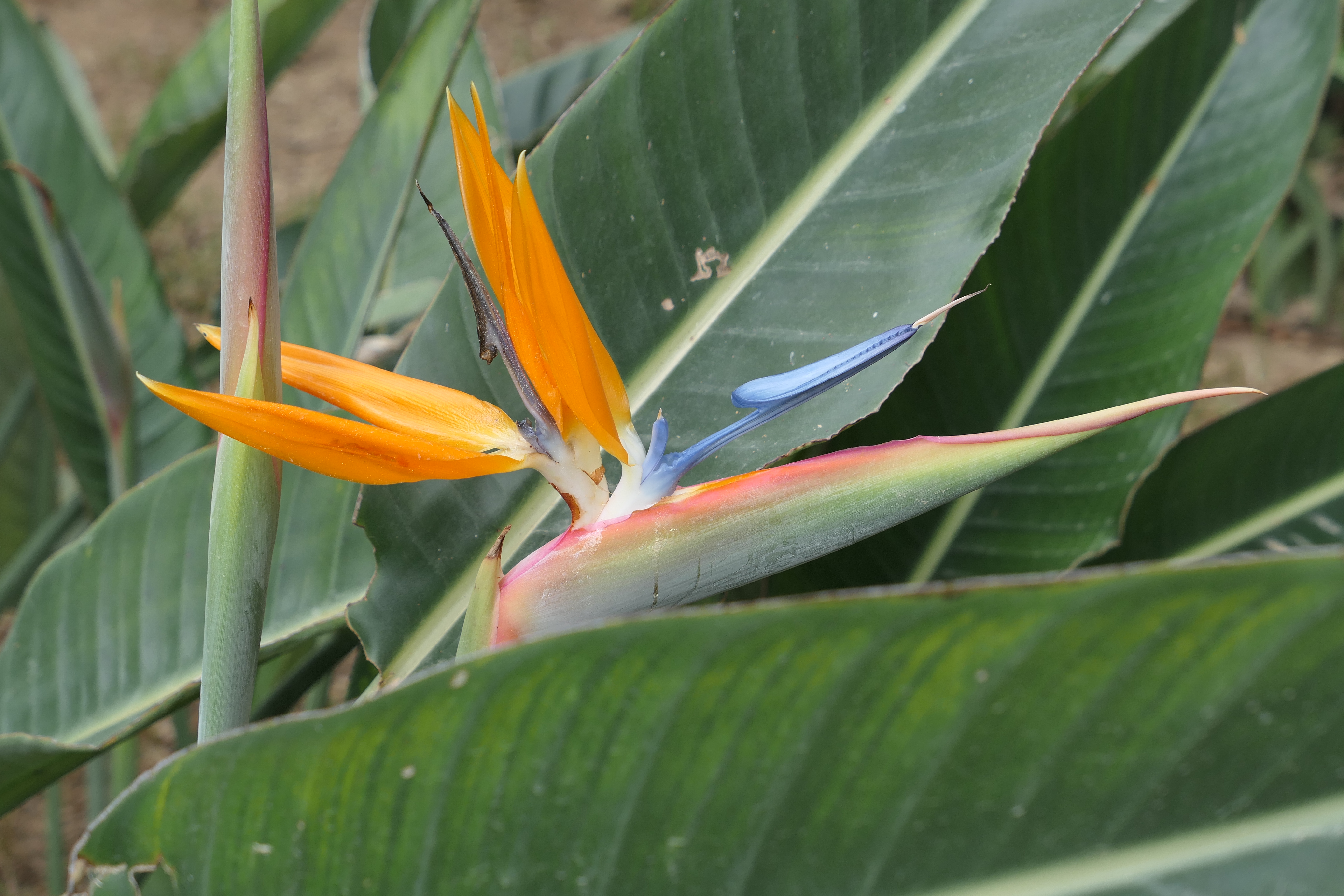 Auf dem Weg vom Parkplatz zum Hotel entdecken wir im milden Klima Paradiesvogelblumen- Strelitzien